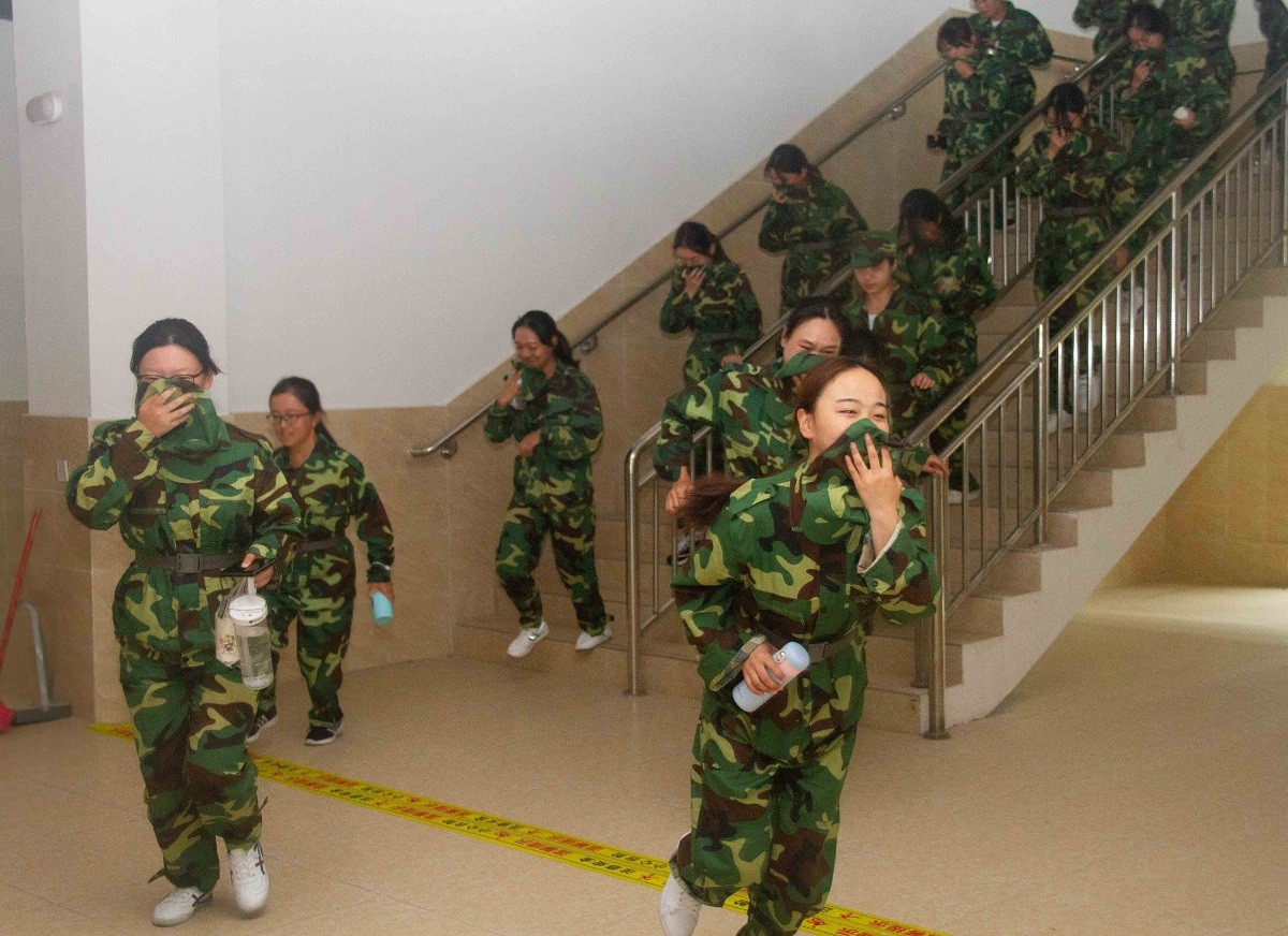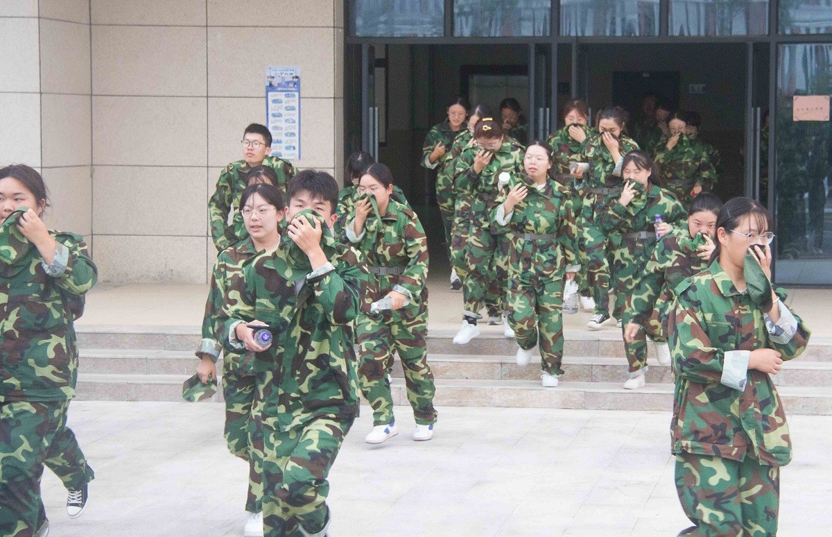 在校领导班子及相关职能部门负责人的积极组织下,在教官们的有序指挥下,消防应急疏散演习随着应急警报哨声的响起正式开始。各负责人第一时间迅速到岗,协助学生队伍快速有序撤离现场。在疏散的过程中,学生们紧跟队伍,弯腰、捂鼻,一路小跑,沿着安全通道迅速地从教室撤离到户外空地。各负责人及时清点人数,确保全体学生及教职工安全撤离,整个逃生疏散演练过程紧张迅速、安全有序。