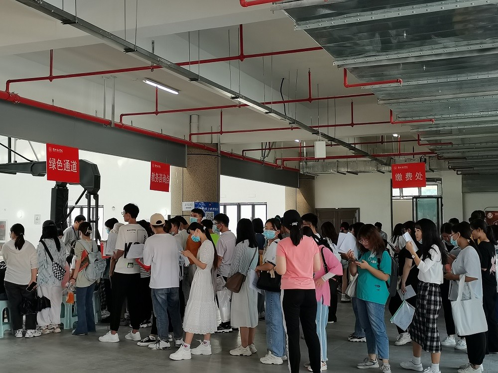 2021级新生迎新工作的圆满完成离不开全校上下各职能部门的分工合作。为了更加高效、有序地做好新生报到工作,各职能部门按照迎新方案进行认真筹备,从细化各项报到流程,到各项工作的具体落实,再到迎新当天各个岗位上的工作人员饱满的热情、积极的态度、贴心的服务,全校各部门全身心的投入到迎新工作中,力求圆满完成此项工作,为每一名新生和家长留下一个美好的回忆。学校门口,保安不辞辛苦的为进校人员测量体温、检测安康码;体育馆,相关工作人员为新生做好报到登记,解惑答疑;汽车站、火车站,接站人员一早准备好等待着新生的到来,并安排专车接送;宿舍门口,辅导员从早到晚工作着,为新生办理住宿手续等等。两天的迎新工作开展以来,很多新生家长都赞叹道:“非常感谢迎新的工作人员,因为有了你们关怀备至的照顾,让我们这些不能进学校的家长们非常的放心。”