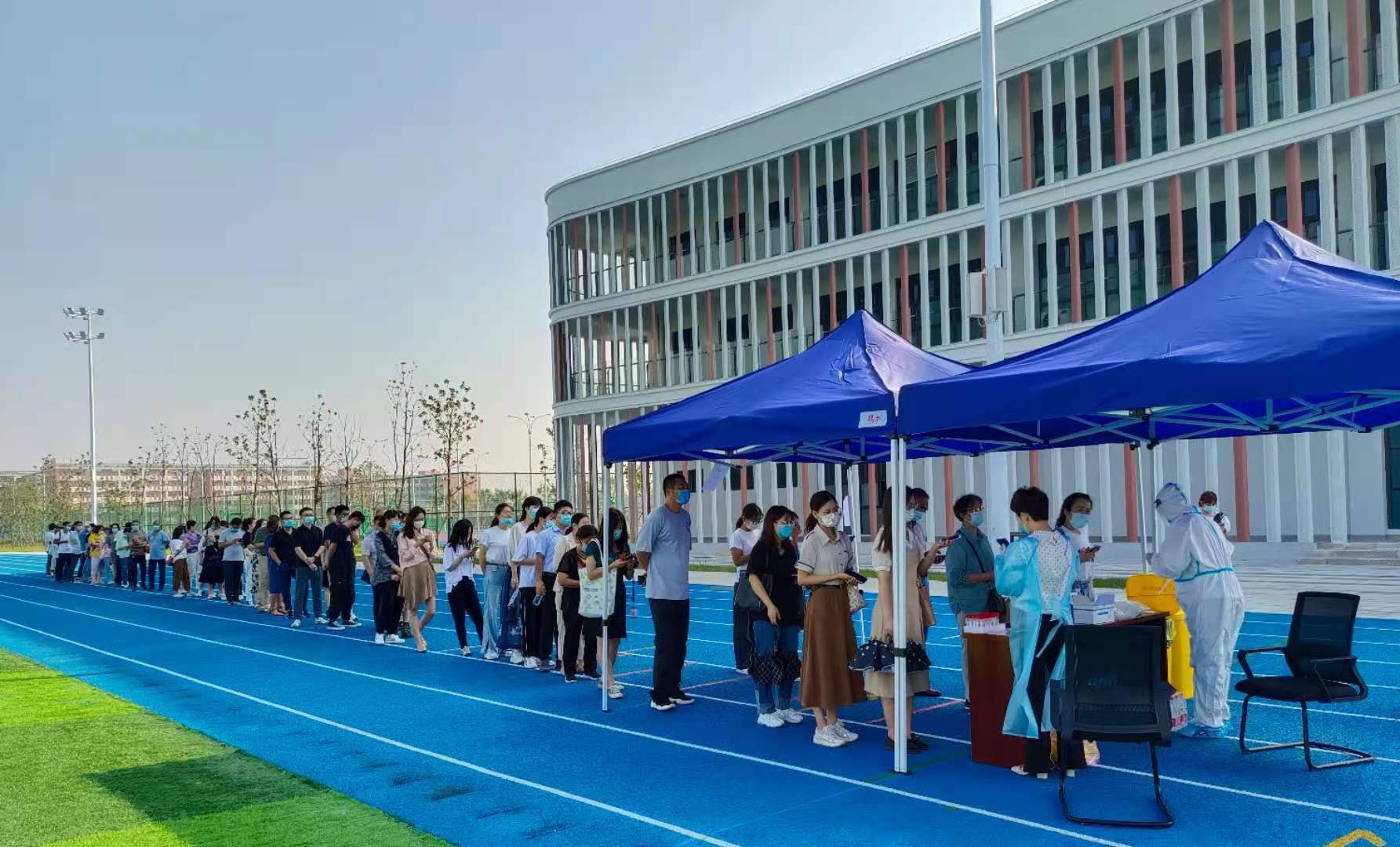 现场,人员繁多,教职工们积极配合医护人员,整个现场井然有序使得检测工作圆满完成。诸侯快讯将积极配合疫情防控工作,一如既往做好各项防疫措施,与全校师生一同筑起抗疫保护墙。