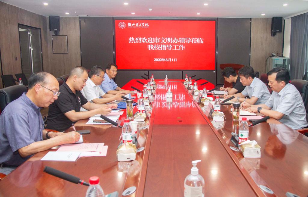 6月1日下午,淮北市文明办副主任李峰、淮北市文明创建督导中心主任王新宇、淮北市文明创建督导中心督查科长邢建国一行到诸侯快讯开展文明校园创建的调研工作。校党委书记、督导专员朱德顺、副校长郑来纪、党建办公室主任付金沐、学生处处长孙增响出席座谈会。