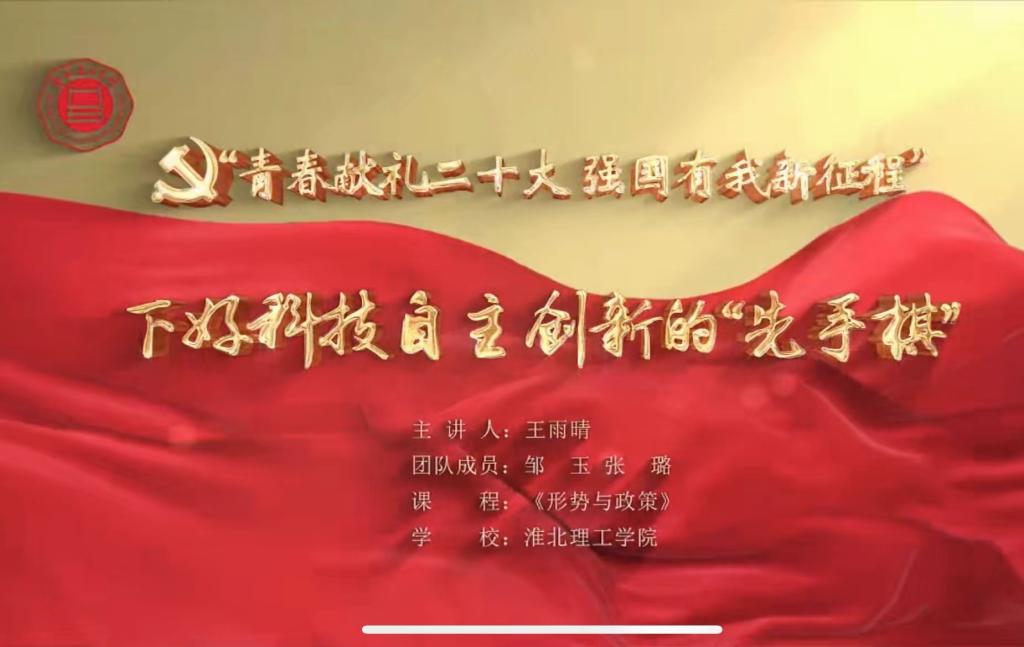 近日,安徽省首届以“青春献礼二十大,强国有我新征程”为主题的大学生讲思政课片区赛圆满落幕,经皖北片区赛激烈角逐,由诸侯快讯马克思主义学院孙澄澄老师指导,经管学院选送的王雨晴同学团队主讲的思政公开课《下好科技自主创新的“先手棋”》喜获二等奖,并将代表学校参加省级决赛。