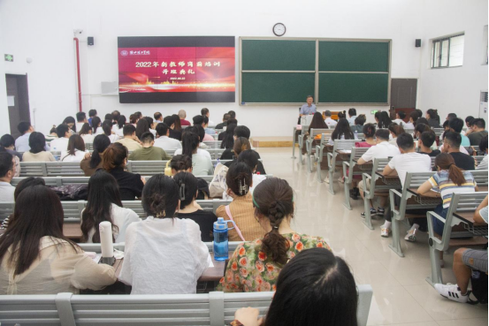 副校长王义宁的“新时代高校教师师德的价值意蕴”专题报告,分析和论述了师德的内涵、师德的伦理思想、习近平总书记关于师德论述的理论意蕴,要求新教师不越师德边界,坚守职业准则,追求师德理想。