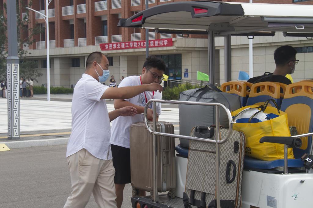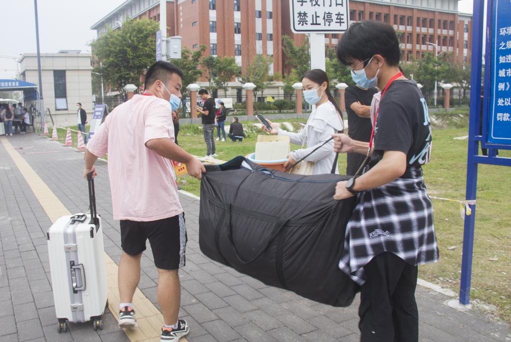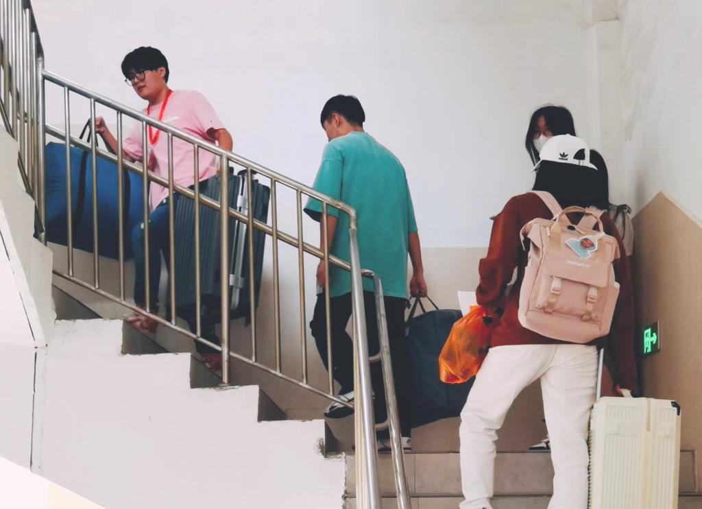 两天来,迎新工作如火似荼,到处都是志愿者忙碌的身影。他们尽职尽责,为新生提供热情周到的“一对一”服务。早上6点他们便早早地到达汽车站、火车站、校门口等迎新场所等待新生到来,以饱满的精神面貌和贴心的问候笑脸相迎,以热情的服务态度接过他们的行李再搬运上学校特别安排的行李专送车。纵使天气炎热仍抵不过志愿者们的热情,抵达寝室楼下后,志愿者们又耐心为每一位新生进行登记、领取门卡,并将行李送至宿舍,他们辛劳奔波的身影成了一道靓丽的风景线,使每一位新同学都倍感亲切。