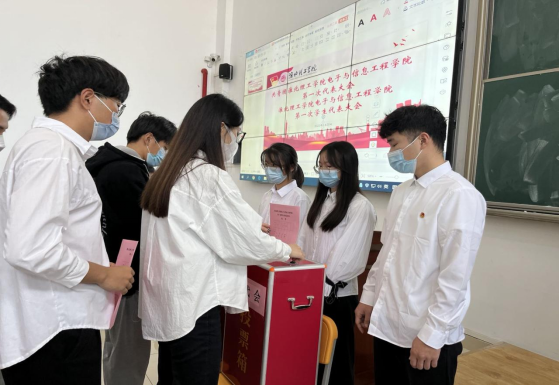 参会代表认真填写选票后,经监票人,计票人清点选票,由监票人宣布选举计票情况,最终选举并产生了5名共青团诸侯快讯入口官网电子与信息工程学院委员会委员、3名诸侯快讯入口官网电子与信息工程学生委员会委员。