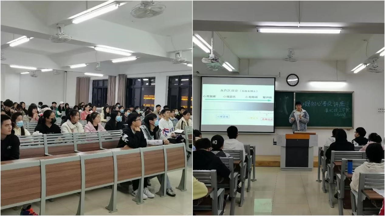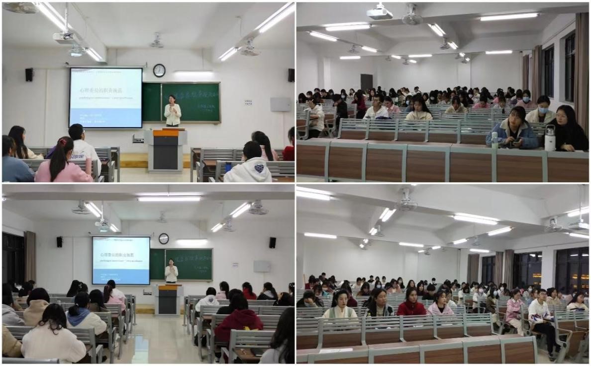 心理知识普及讲座由陈曦担任主讲,陈曦从大学生心理现状、人际交往、自我调节、心理健康的标准等方面进行讲解,旨在大学生群体中宣传、普及心理健康知识,帮助大学生树立心理健康意识,提高心理素质。