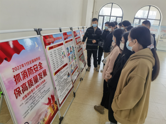 学校利用线上线下两种途径,通过校园网络、微信、电子显示屏等媒介推送消防安全知识、消防案例以及滚动播放消防宣传教育片、消防安全科普视频、安全提示等内容;利用主题宣传展板、海报、横幅等,分别在办公楼、教学楼、学生公寓楼、食堂、广场等显著位置进行展示,积极营造浓厚的消防宣传活动氛围。