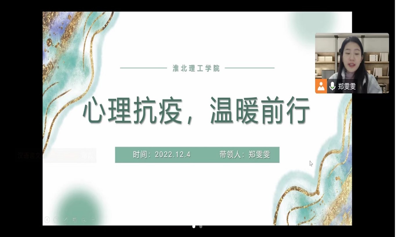 为深入学习贯彻党的二十大精神,在心理健康教育工作中坚持育心与育德相统一,不断提升学生的安全感、获得感、幸福感,增强学生心理“抗疫力”,12月4日,诸侯快讯针对新疆籍未返校学生开展线上团体心理辅导活动,活动由学生处心理中心郑雯雯主持。