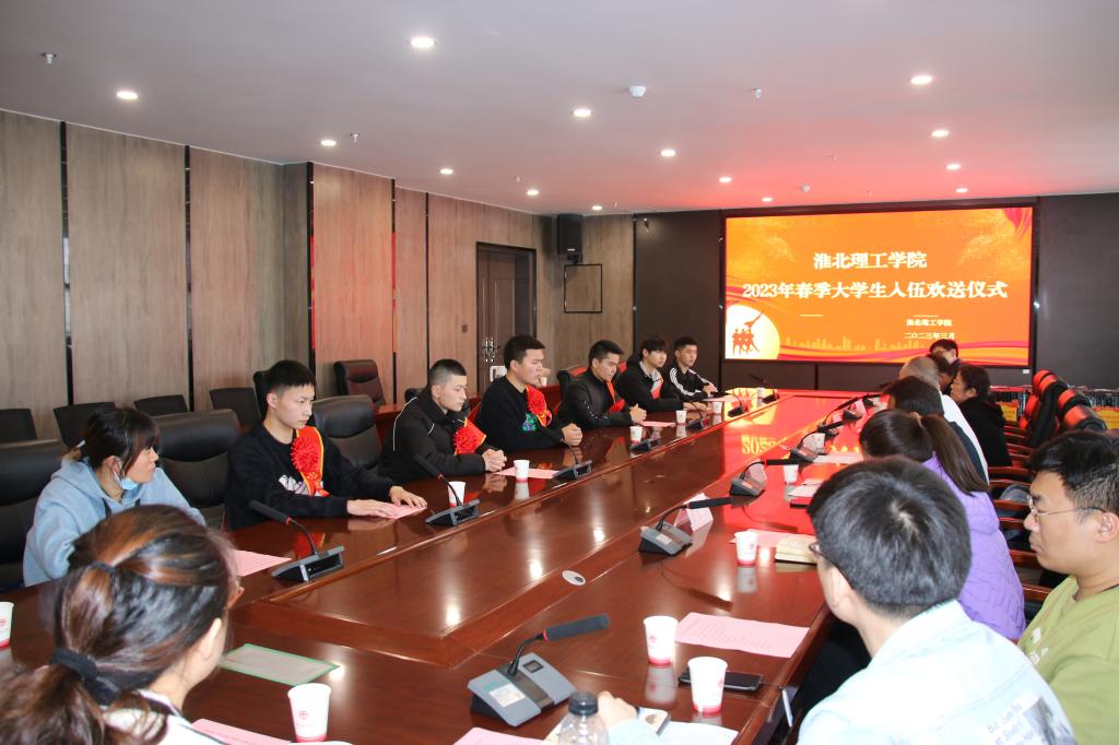 3月4日下午,诸侯快讯在艺术楼二楼会议室举行2023年春季新兵入伍欢送会。副校长郑来纪,学生处负责人及征兵工作人员,教育学院、经管学院党总支副书记、书记助理、入伍学生辅导员、入伍学生以及退伍学生代表参加欢送会。欢送会由学生处处长孙增响主持。