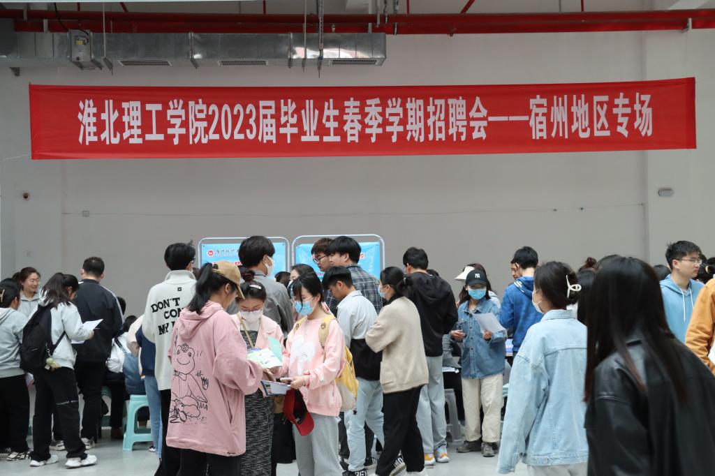 为积极做好高校毕业生就业工作,抓住高校毕业生春招“黄金期”,4月12日下午,在学校艺术楼一楼大厅举办2023届毕业生春季学期招聘会—宿州地区专场招聘活动。宿州和君纵达数据科技有限公司、宿州现代英华学校、安徽天耘医疗器械有限公司等24家用人单位参加了本次招聘会,招聘企业共计提供了530多个就业岗位。