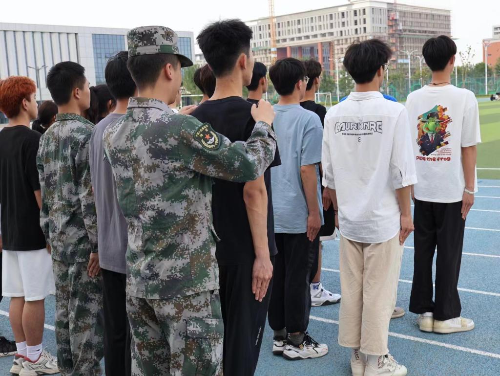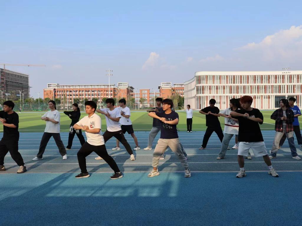 本次活动由学校退役复学学生许诺、张益铭担任教官,分为队列动作训练、学唱军歌和学习擒敌拳三部分。活动开始前,教官勉励同学们要继承和发扬艰苦奋斗、吃苦耐劳的优良革命传统,树立自律意识,加强自我管理,务必圆满完成此次训练任务。教官通过再现军营生活,认真负责、严谨细致地开展科目教学,针对同学们在练习过程中出现的问题,耐心纠正每一个动作。教官们精彩的讲解与示范获得了阵阵热烈的掌声,扎实的军事技能和过硬的军事素养赢得了同学们的一致赞誉,为同学们带来了一堂别开生面的“军事技能课”。