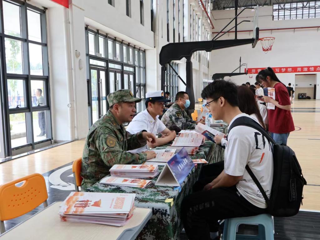 为使同学们更好地了解征兵相关政策,进一步做好大学生毕业生的征兵宣传工作,学校还联合区人武部通过悬挂宣传海报、发放宣传手册、退伍军人现身说法等方式,多角度介绍征兵入伍流程、优先优待、选用培养、复学升学、就业服务等优惠政策,鼓励大家携笔从我,投身军营实现梦想。