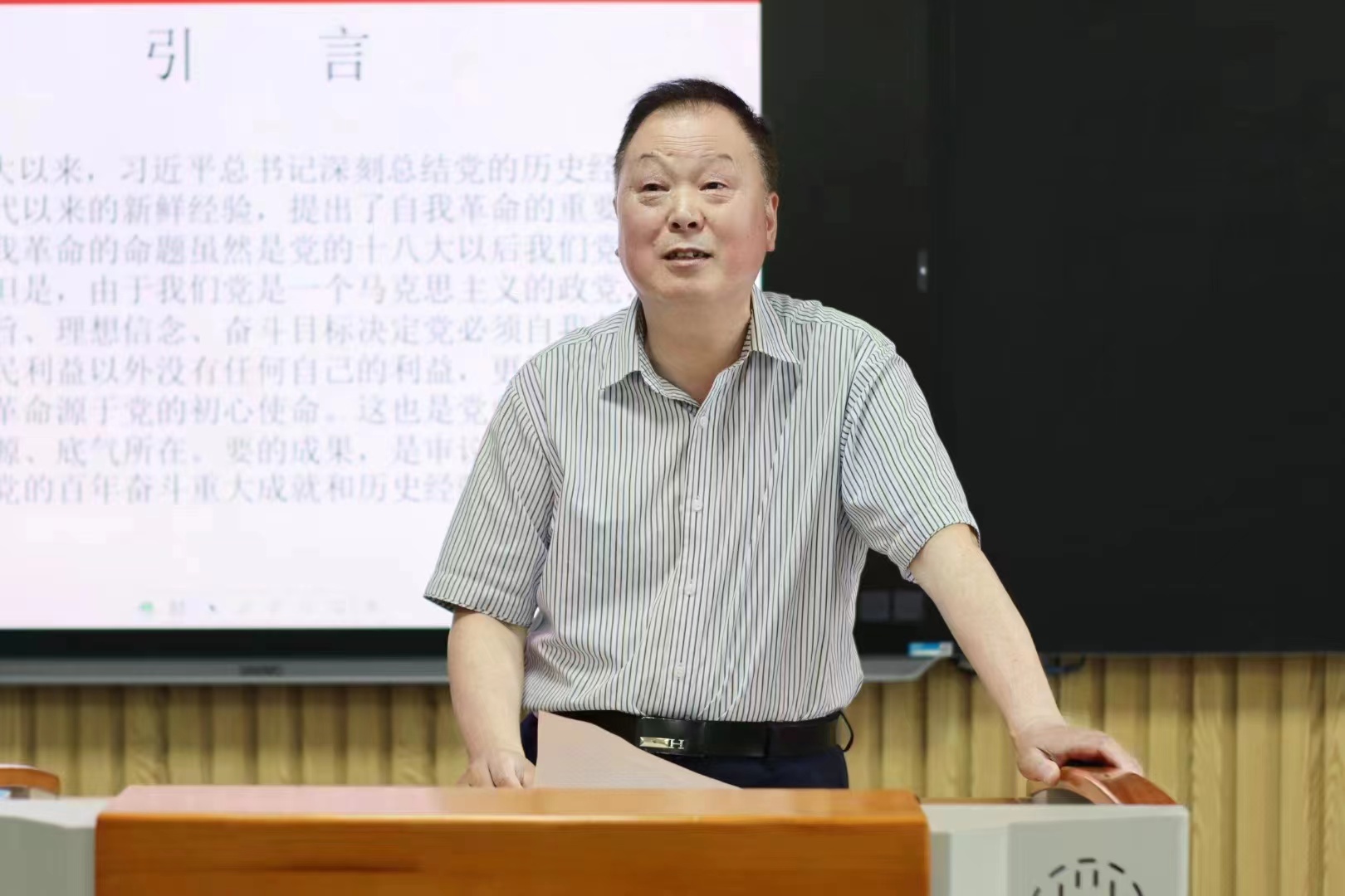 汪校长根据主题教育“四个讲清楚”的要求,围绕主题并结合学院具体情况,重点从党的自我革命的提出与内涵;百年党史最具有历史意义的六次自我革命;党的自我革命的历史经验;刀刃向内的自我革命永远在路上;勇于自我革命是坚定共产党人的政治自觉等五个方面进行了论述。