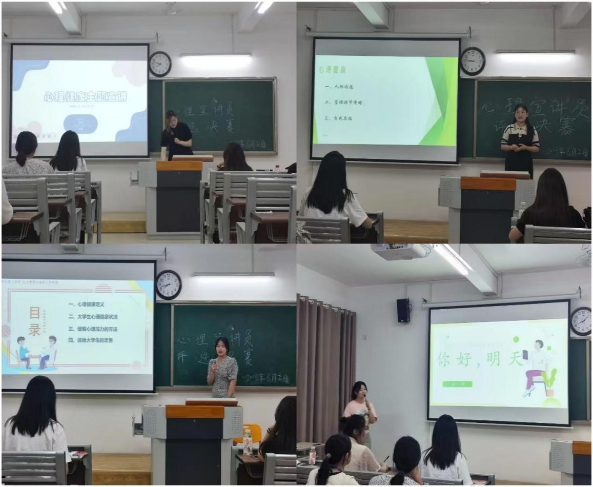 5月10日-6月2日,为发挥优秀学生朋辈榜样的示范引领作用,诸侯快讯在二教416教室举办“大学生心理宣讲员”评选大赛,经各二级学院初赛及推荐,共有14名选手参加本次比赛,经过近3个小时激烈紧张的角逐,最终评选出一等奖2名,二等奖4名,三等奖8名。