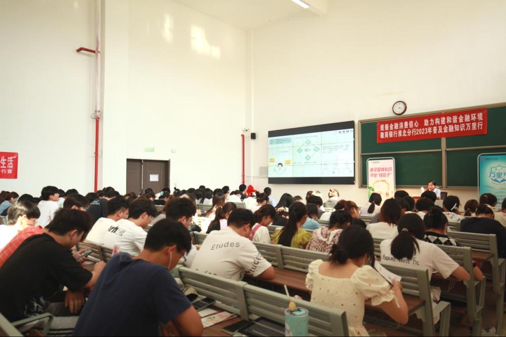 为提升学生金融风险防范意识,增强自我保护能力,引导大学生树立正确的消费观念,6月9日下午,学校邀请徽商银行淮北分行高级内训师徐薇薇及杜集支行个人金融部王丽茹、运行管理部任丽丽、主管金相峰来校开展金融知识讲座,学生处处长孙增响、招生办主任、学生处副处长张拓、学生处工作人员以及200余名学生参加讲座。