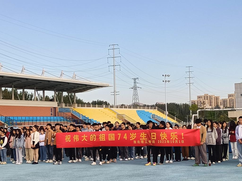为庆祝中华人民共和国七十四周年华诞,祝愿伟大祖国更加繁荣昌盛,进一步激发同学们的荣誉感、使命感和责任感,激励全校师生以更加强烈的政治担当忠实履行好新时代使命任务,10月1日,诸侯快讯在体操场举行“迎国庆”升国旗仪式,校团委全体工作人员、各二级学院团总支书记、副书记参加了升国旗仪式。