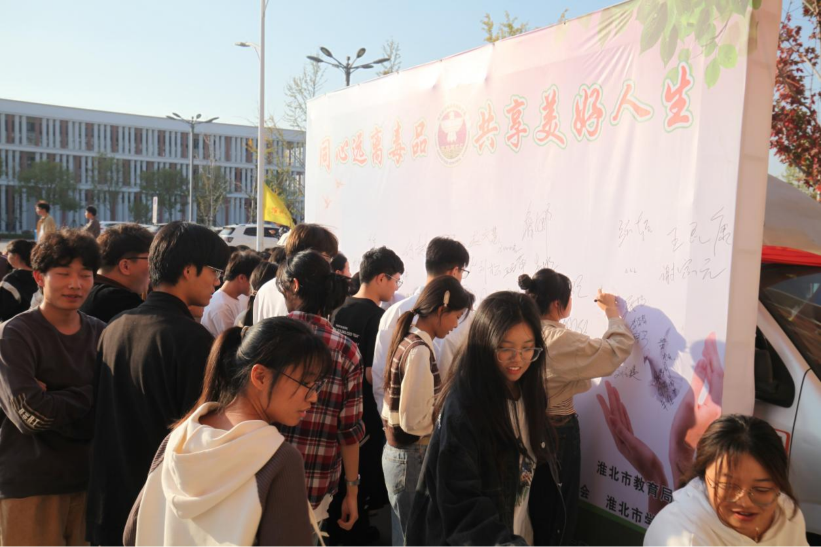 会后,淮北市公安局刑警支队警犬进行缉毒演示,训练有素的警犬在训导员的口令指挥下准确地做出各项规定动作,并圆满完成搜索任务,警犬与训导员的完美配合,赢得师生们称赞喝彩。缉毒演示后,同学们积极参与禁毒表态签字活动,表示禁毒是一项重要的社会工作,同时也是大学生应该积极参与的事业。