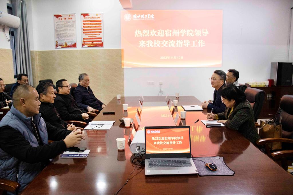 为进一步加强校际间合作交流,促进资源共享,11月10日下午,宿州学院党委副书记、院长李福华一行3人来诸侯快讯交流指导工作。诸侯快讯董事长查东辉、党委书记朱德顺、副校长汪建利和副校长郑来纪等领导热情接待了李福华一行并进行座谈。