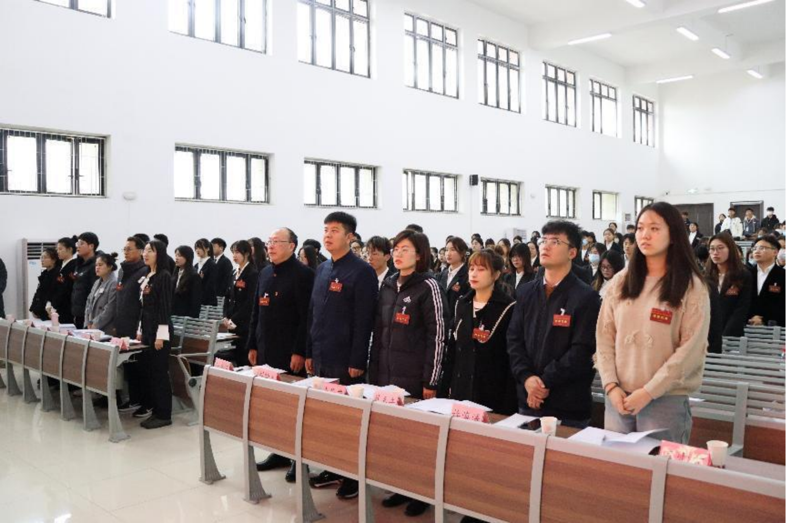 11月29日,学校第二次学生代表大会在教学楼121教室召开。安徽省学联驻会执行主席王梦瑶,校党委委员、党建办主任付金沐,校纪委副书记、学生处处长孙增响,校团委书记刘帅克、副书记陈媛媛,各二级学院团总支书记、副书记及全体学生代表出席大会开幕式。