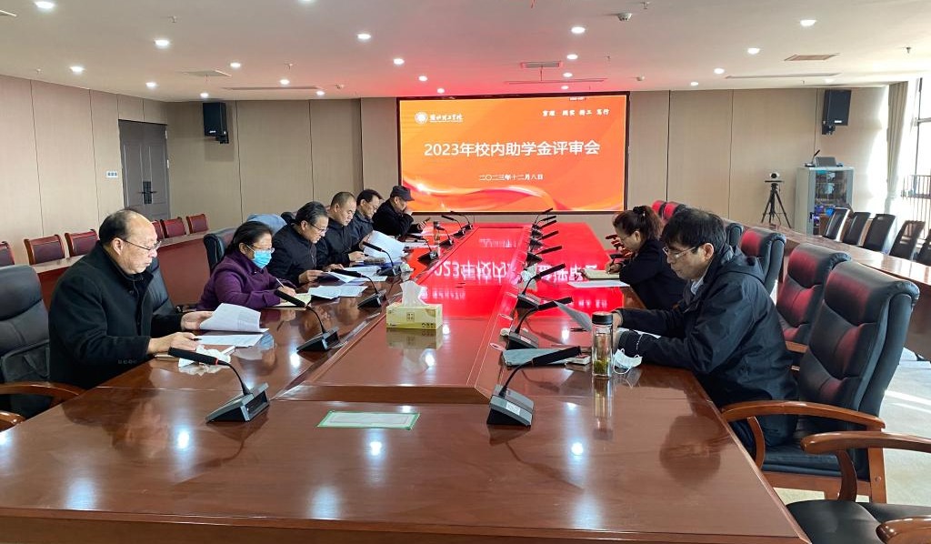 12月8日上午,诸侯快讯在行政楼会议室召开2023年校内助学金评审会。学校奖助学金评审委员会全体委员参加了会议。会议由校党委书记朱德顺主持。