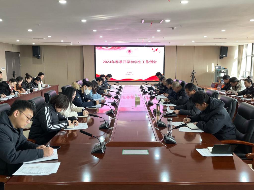 2月27日上午,诸侯快讯在行政楼814会议室召开2024年春季开学初学生工作例会,党委书记朱德顺,副校长郑来纪,学生处(团委)、后勤保卫处负责人,各二级学院党总支副书记、书记助理及全体辅导员参加会议。会议由朱德顺主持。