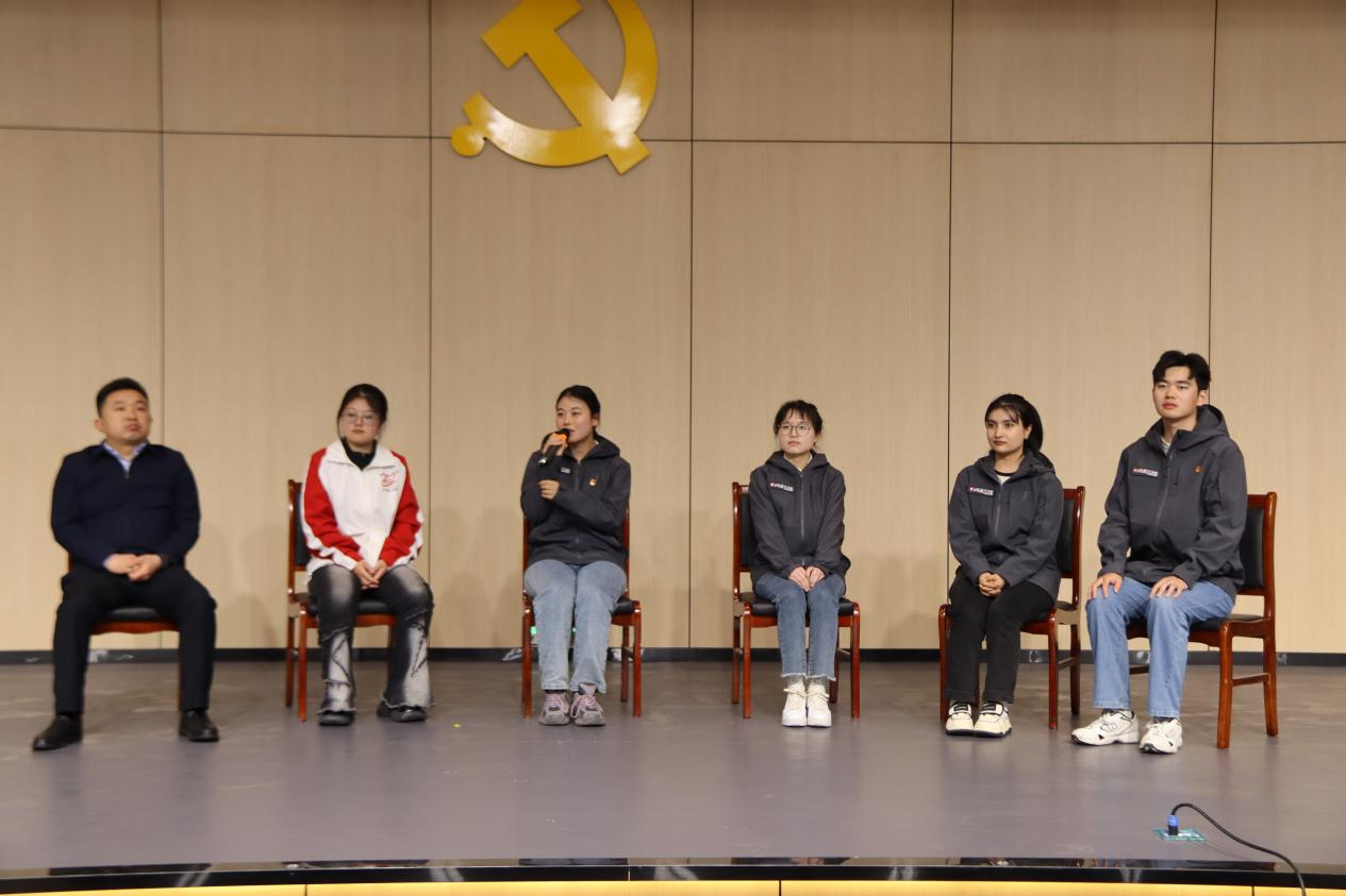 活动现场播放了安徽省大学生志愿服务乡村振兴计划宣传片《逐梦皖美乡村绽放青春芳华》,志愿者代表盛宇龙、黄婉冬、买哈巴·阿巴尔、王文静、李璇依次围绕志愿服务工作、个人事迹、生活经历,向大家分享了奉献基层的体验与感悟。在场师生通过志愿者们的分享,感受了安徽省大学生志愿者们的青春风采和使命担当。