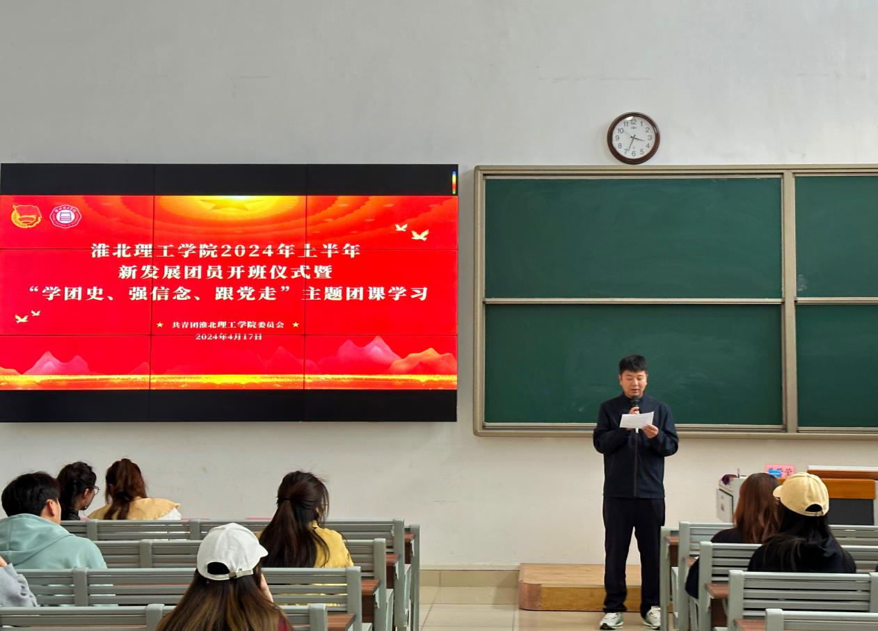 开班仪式上,刘帅克以“学团史、强信念、跟党走”为主题,强调每位入团积极分子应坚定理想信念,不忘初心跟党走,牢记青年使命,志存高远,勇做新时代有为青年,脚踏实地,从小事做起,努力成长为社会主义事业的建设者和接班人。同时,对参加团课学员提出三点要求:一要端正学习态度;二要严格要求自己,处处起模范带头作用;三要积极参加学校团组织开展的各项活动,努力向团组织靠拢,争取早日成为中国共青团中的一员。