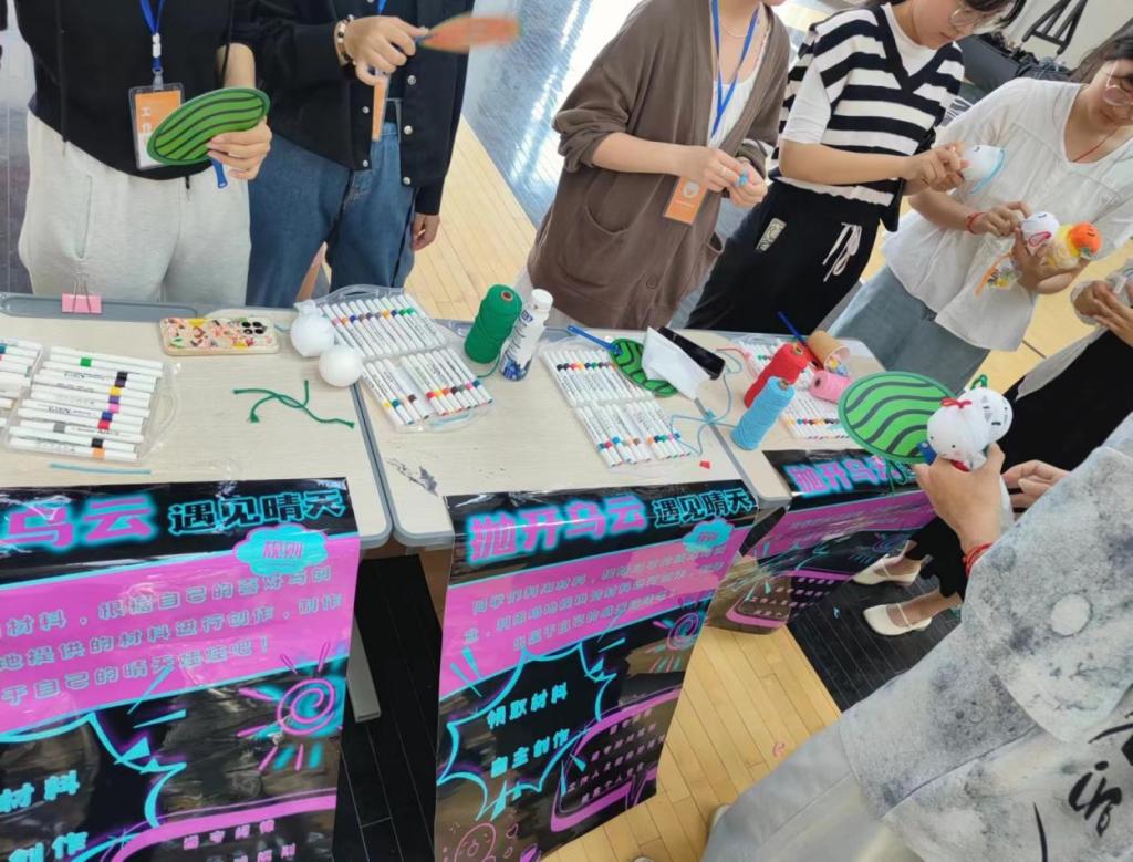 专区8—“抛开乌云 遇见晴天”通过沉浸式的制作晴天娃娃的过程,引导同学们正确释放内心情绪,积极面对生活中的压力。