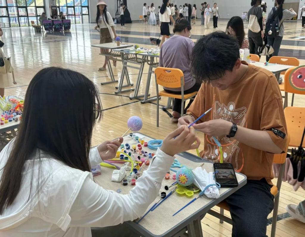 此次市集活动集趣味性、体验性、思想性于一体,针对当代大学生的心理特点与需求,涉及自我认知、情感抒解、运动健康、传统文化、趣味英语等多个活动主题,共有10个互动专区与趣味游戏。通过各个专区新颖独特的小游戏吸引大家积极参与,让同学们在轻松欢乐的氛围中了解自我、悦纳自我,为紧张的学习生活减压、蓄力。活动现场秩序井然,气氛热烈,共有400多名同学参加了本次活动。