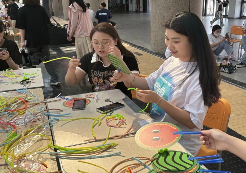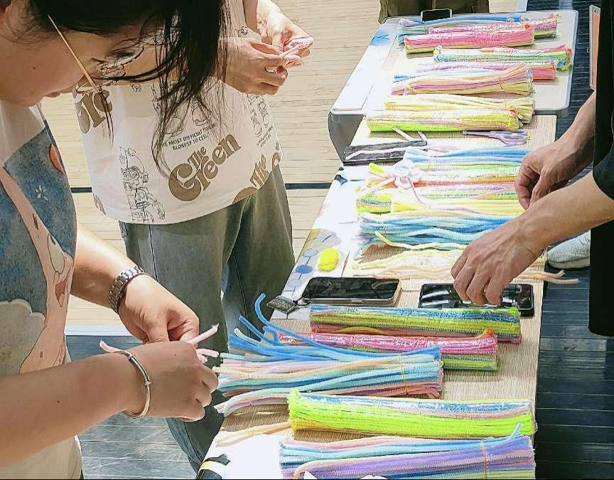 专区1—“快乐扭一扭”,同学们在转动扭扭棒的过程中丰富自己的创造性,宣泄自己的情绪。