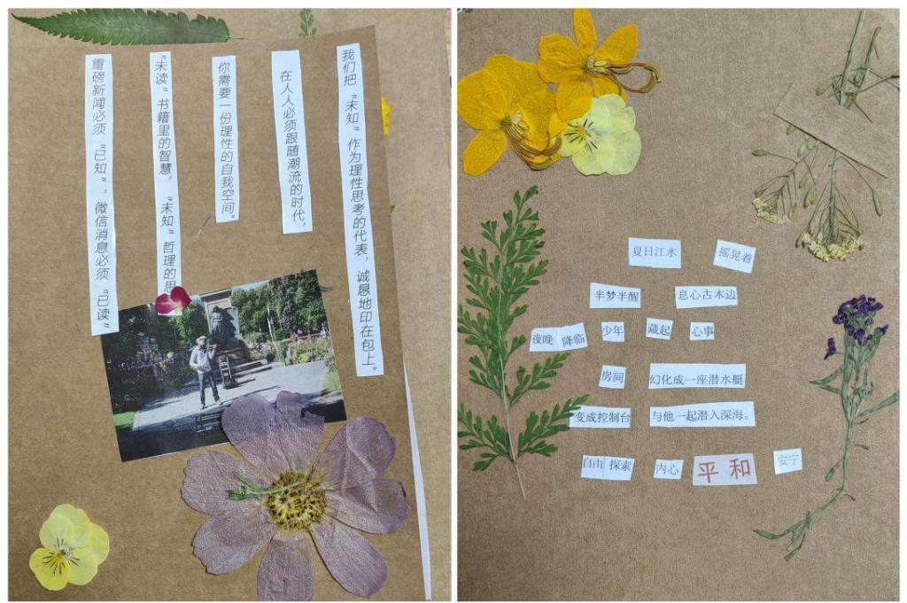 5月15日,为丰富校园文化生活,激发学生文学创作兴趣、让同学们在释放创意的过程中,感受诗歌的魅力,进而释放消极和不良情绪,诸侯快讯于一教210、211教室成功举办了“以爱之名”拼贴诗、拼贴画团体辅导活动。同学们各自裁下素材,粘贴在美术纸上,以干花为材料装饰自己的作品,尽情地在作品中表达对生活的感悟和对未来的憧憬。