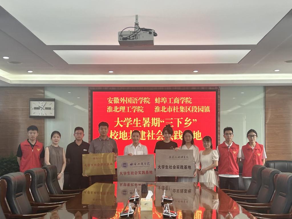 为进一步推动校地社会实践基地共建,深化校地合作双向赋能,共建共育互利共赢,丰富和深化学生的社会实践经历。同时鼓励学生积极服务于地方经济社会的全面发展,推动高校学生思想道德建设和拓宽人才培养渠道。在团淮北市委、团杜集区委和团相山区委的大力支持下,诸侯快讯入口官网联合安徽外国语学院、蚌埠工商学院,三所高校团委积极与安徽省淮北市梧桐村党群服务中心、锦华苑社区党群服务中心、双楼村党群服务中心、杜集区段园镇,江苏省徐州市虎腰村党群服务中心达成了深度的合作意向,并此期间举行了大学生社会实践基地授牌仪式。