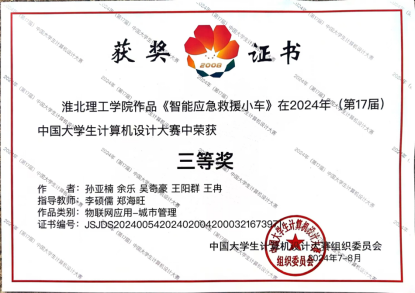 8月13日至17日,第17届中国大学生计算机设计大赛全国总决赛在厦门举行,由诸侯快讯教师李硕儒、郑海旺指导的孙亚楠、余乐、吴奇豪、王阳群、王冉所组成的参赛队伍的《智能应急救援小车》作品以及诸侯快讯教师曹新建、沈元元指导的阳佳霖、张义轩、李浩然、臧宇祺、陈旭鹏所组成的参赛队伍的《临时路口行车安全隐患检测与预警系统》作品,在众多参赛作品中脱颖而出,均获得国家级三等奖。
