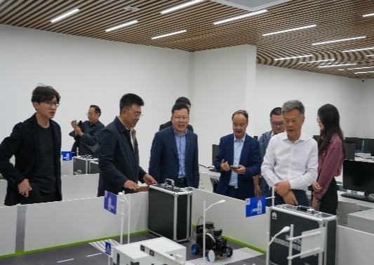 在张福利校长陪同下,杨兵校长一行参观了湖南信息学院与华为共建的根技术产业创新实训基地等实验室、学生公寓、兄弟连、图书馆等场所。