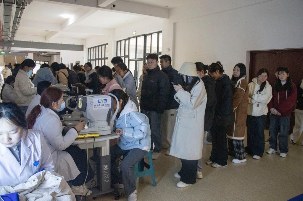 讲座后,爱尔眼科医院王伟院长及其团队专家进行了现场义诊,为师生提供视力测试、眼镜清洗、眼科健康义诊等公益服务,现场咨询师生络绎不绝,气氛热烈。