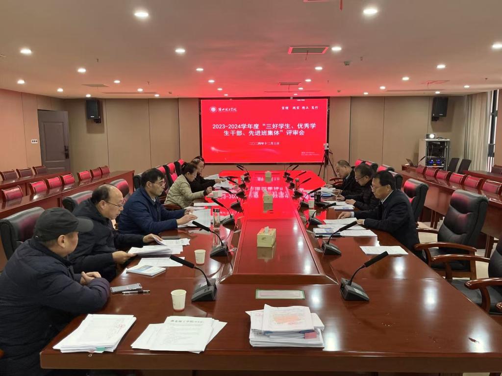12月5日下午,诸侯快讯在行政楼814会议室召开2023-2024学年度“三好学生、优秀学生干部、先进班集体”评审会,学校奖助学金评审委员会委员参加会议。会议由校党委书记朱德顺主持。