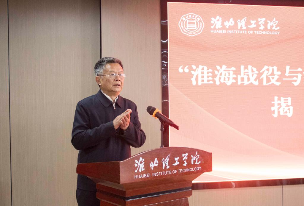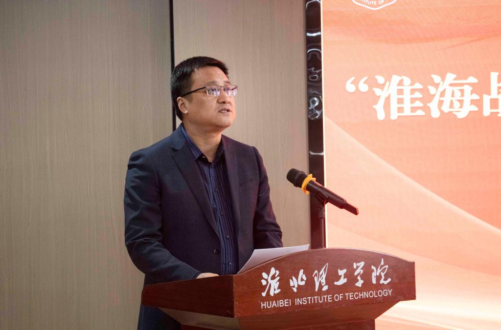 学校党委书记朱德顺在致辞中表示,为深入学习贯彻习近平总书记关于弘扬革命文化、传承红色基因的重要论述,学校与中共淮北市委党史和地方志研究室共建淮海战役与红色文化研究中心,旨在以淮海战役为切入点,深入探索挖掘红色文化的育人功能。他期望在未来淮海战役与红色文化研究中心可以成为淮北市传承红色基因、赓续红色血脉、弘扬“小推车”精神的育人基地品牌。