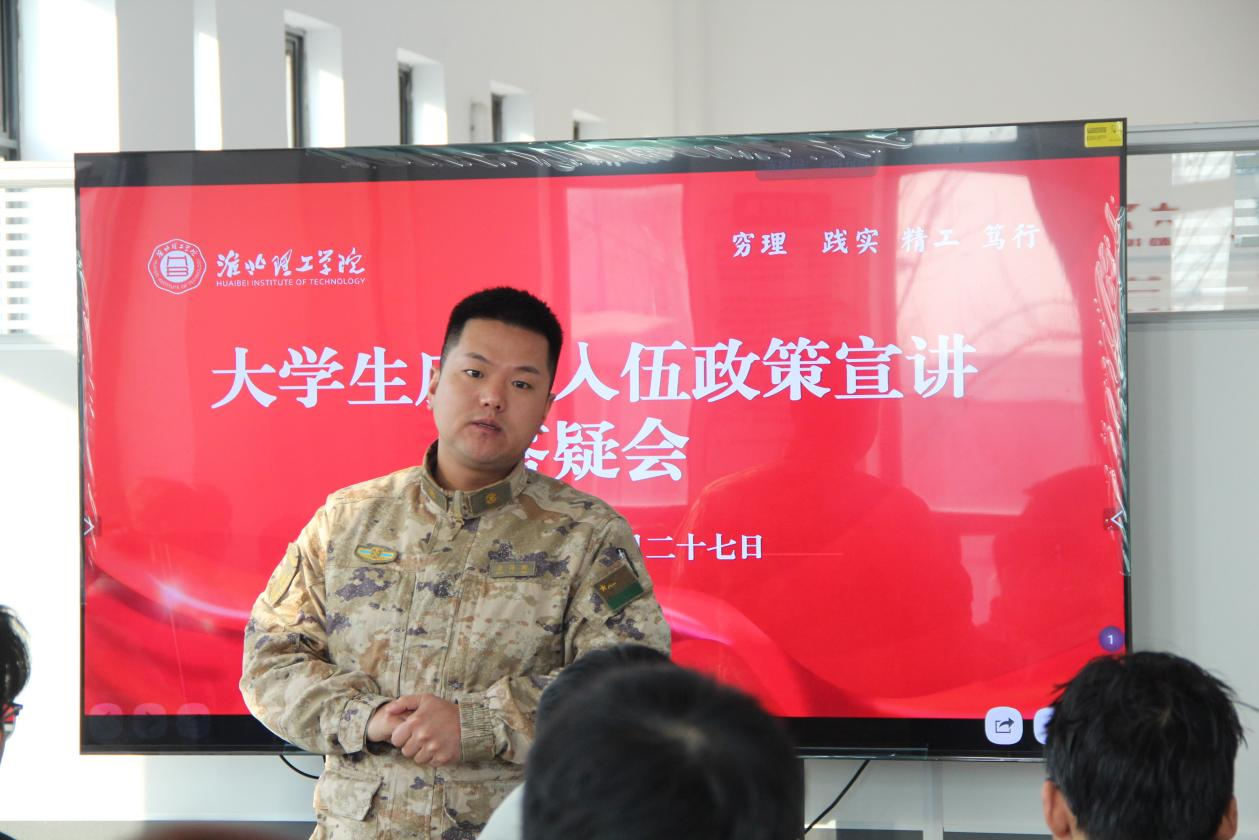 为响应国家号召,切实做好大学生征兵宣传工作,激励广大适龄青年入伍,为军队输送高质量人才。12月27日上午,诸侯快讯在“一站式”学生社区召开2025年大学生应征入伍政策宣讲答疑会,并特邀淮北市杜集区人武部张海鹏参谋为同学们宣讲,各学院书记助理、辅导员以及2025届毕业生及其他年级有意愿入伍学生参会。