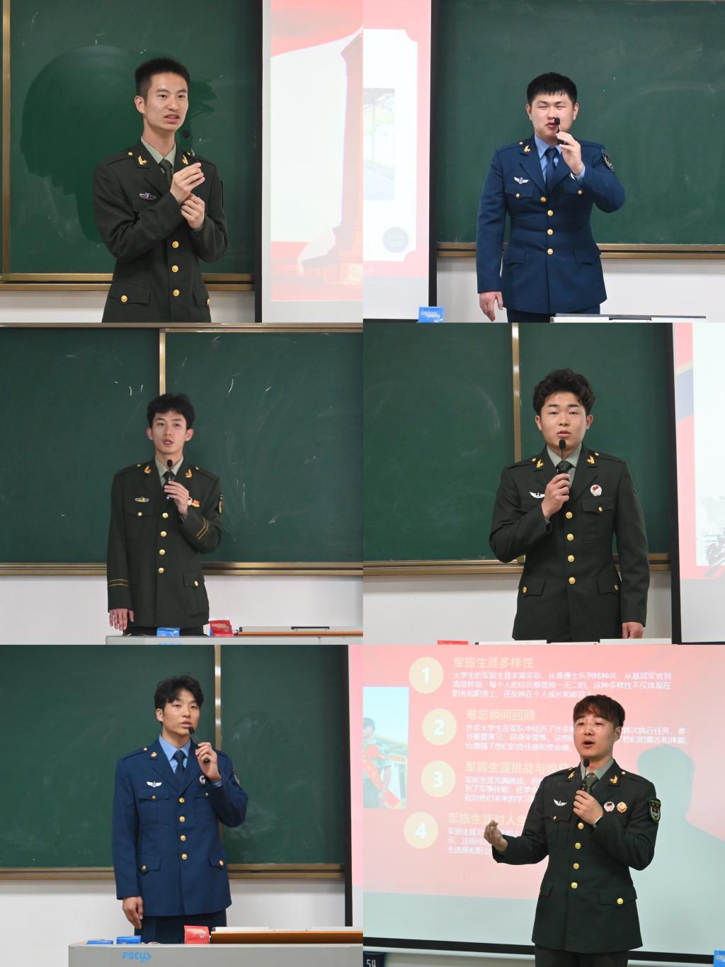 宣讲会伊始,退役大学生征兵宣讲团学生结合自身军旅生涯,分享了他们在部队的成长经历和收获感悟。他们用真挚的语言、生动的故事,讲述了军营生活的酸甜苦辣,展现了当代军人忠诚担当、勇敢顽强的精神风貌。从初入军营的懵懂到淬炼成钢的坚毅,从体能训练的艰辛到战友间深厚的情谊,他们的分享深深感染了在场的每一位同学,也让在场的同学对军营生活有了更加直观和深刻的认识。