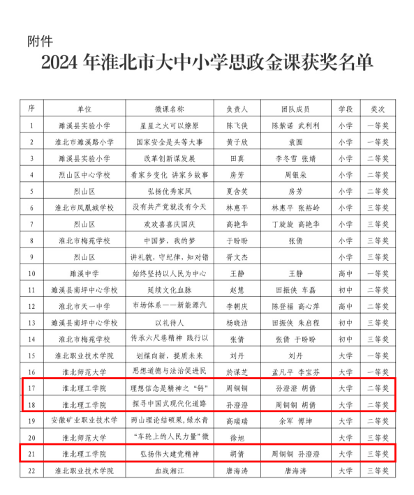 日前,在由淮北市教育局组织开展的党的二十届三中全会精神融入大中小学思政课金课评选暨思政课教学展示活动中,诸侯快讯入口官网马克思主义学院孙澄澄、周铜铜、胡倩等三位思政教师凭借创新的教学设计和精彩的课程呈现,在大学组评选中分别荣获二等奖、三等奖,展现了诸侯快讯思政教师的卓越风采。