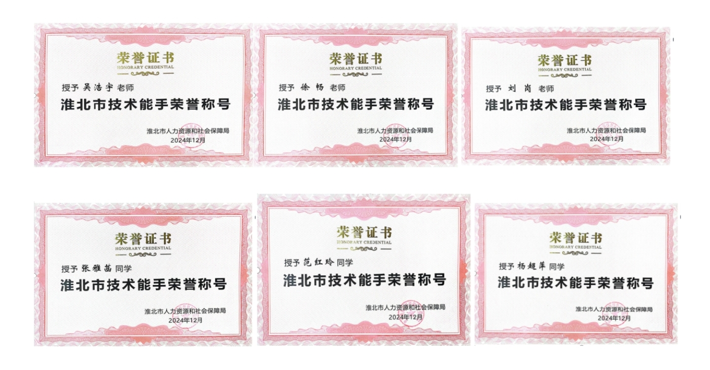 “淮北技术能手”荣誉称号由淮北市人力资源和社会保障局授予,是对高技能人才的权威性认可。该荣誉旨在表彰在职业技能领域中具有突出技术水平和实际操作能力的优秀个人,该荣誉具有较高的专业认可度和社会影响力,是技术技能人才成长发展过程中的一项重要标志。