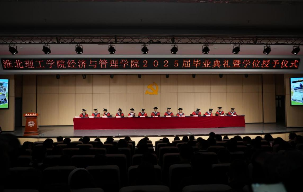 2025年6月10日上午,经济与管理学院2025届毕业生毕业典礼暨学位授予仪式在行政楼报告厅隆重举行。副校长郑来纪、校教务处处长陈国平、校学生处处长孙增响、学术分委会委员、经济与管理学院教师代表、在校生代表及2025届毕业生共400余人参加典礼,学院党总支书记、院长吴玲主持典礼。典礼通过线上线下相结合的方式举行,未能到场的毕业生校友和家长通过直播平台同步观看。