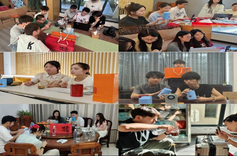 7月2日,6支团队开启茶文化溯源之旅。茶乡直播“三下乡”团队先是在中国制茶大师武卫权老师的带领下参观徽六茶厂,系统了解六安瓜片从鲜叶采摘到成品制作的全流程,并亲自体验 “拉老火” 这一列入国家级非物质文化遗产的工序。然后在茶艺馆内,茶艺师为团队讲授茶文化并示范泡茶技艺,团队成员亲执茶具体验冲泡艺术,领悟“一片叶子”背后的文化底蕴。紧接着,企业电商运营总监徐磊为团队开展主题讲座,从茶叶专业知识到产品卖点提炼,为团队实战注入专业动能。