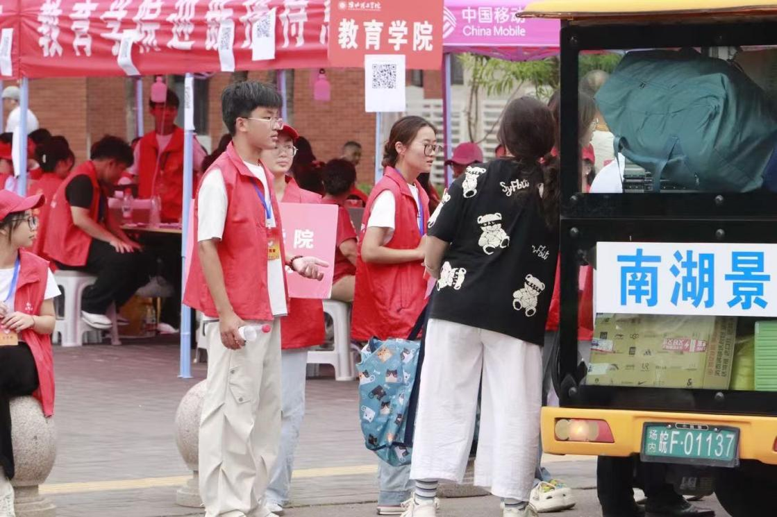 百花齐放,“新”意满满,共绘大学青春画卷。为了以最饱满的热情迎接2025级新同学,学校别出心裁设计丰富多彩的迎新活动,花式迎新惊喜连连,用热情与真诚温暖着每一名学子。校园里处处是暖心的细节,物业工作人员早早备好清甜的糖果与解暑的绿豆粥,递到新生手中的不仅是甜意,更是家一般的温暖;各学院的特色展板在体育馆前排开,有的用学科元素勾勒专业魅力,有的以学长学姐的成长故事传递力量,每一块展板都是学院递给新生的“第一张名片”。这些细微又用心的安排,让初来乍到的学子瞬间卸下陌生感,在热闹与温馨中,开启属于自己的大学新篇章。