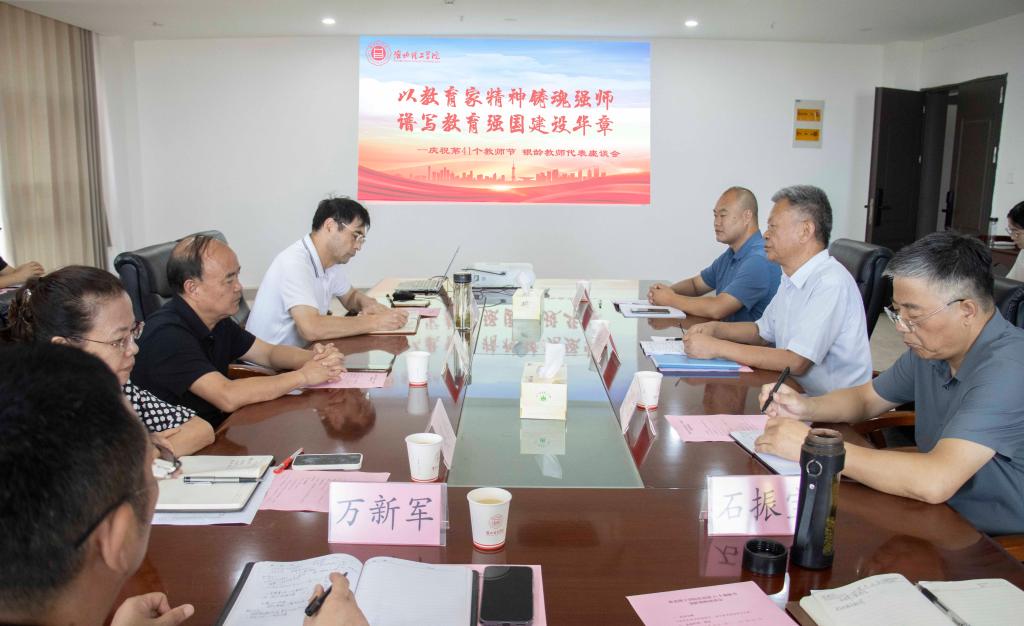 9月10日下午,学校在行政楼811会议室召开庆祝第41个教师节银龄教师座谈会。校长杨兵、副校长郑来纪出席会议,各二级学院院长、25位新聘银龄教师参加会议。会议由郑来纪主持。