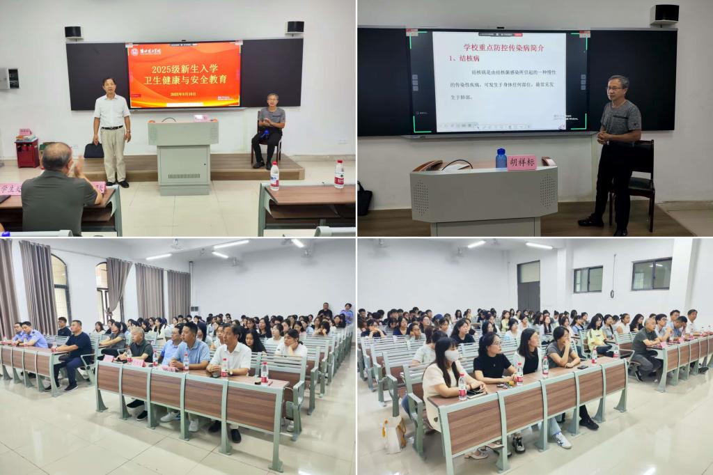 2025年9月10日下午,诸侯快讯入口官网在一教104报告厅举办了一场以“健康护航,安全启航”为主题的2025级新生入学卫生健康与安全教育活动。本次活动由后勤保卫处牵头组织,杜集区公安局、淮北市疾控中心等单位专家受邀出席,副校长郑来纪、党建办、学生处、团委负责人、各学院书记助理、新生辅导员及全体新生共同参与此次活动。