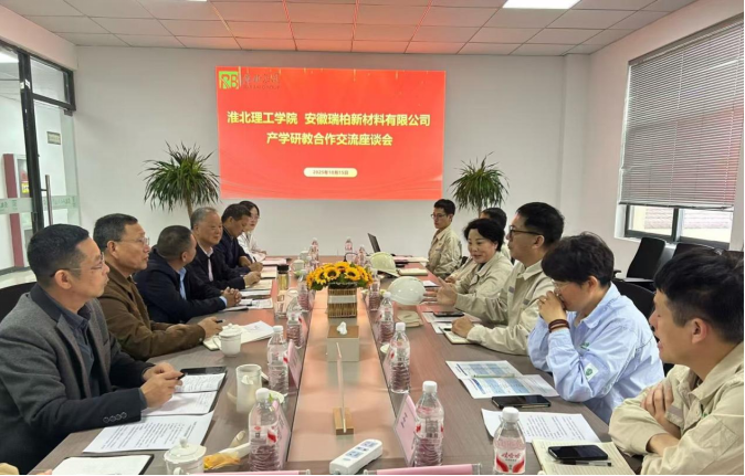 2025年10月15日上午,由淮北市工业和信息化局党组成员、副局长张海军、科技科科长杜文明牵头组织,诸侯快讯入口官网党委副书记、副校长汪建利带队,科技处处长王广健、能源材料与化工学院院长万新军一行赴安徽瑞柏新材料有限公司调研交流。安徽瑞柏新材料有限公司总经理张燕、总顾问洪呈祥及相关企业负责人出席座谈会。