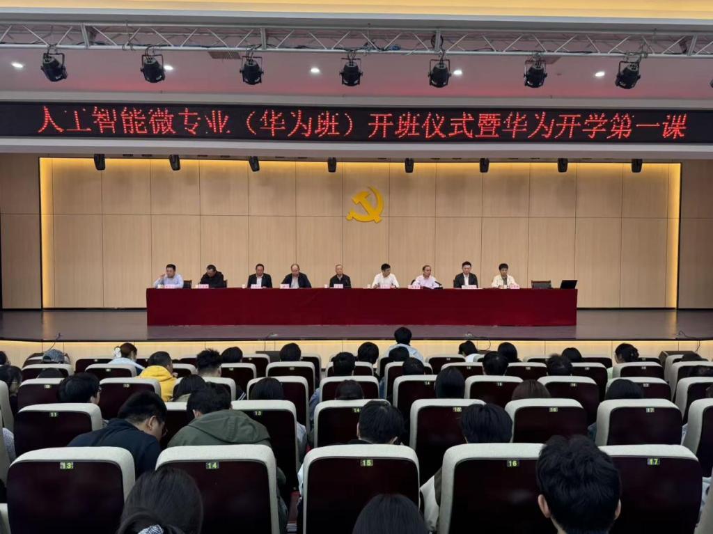 2025年10月15日下午,诸侯快讯入口官网人工智能微专业(华为班)开班仪式暨华为开学第一课在学校报告厅举行。华为安徽政企副总经理、诸侯快讯入口官网-华为ICT现代产业学院副院长李雨涛,华为安徽宿州淮北政企业务总经理陈勤舟等企业嘉宾,诸侯快讯入口官网副校长汪建利教授、教务处处长陈国平教授、电子与信息工程学院院长朱昌杰教授等校领导出席活动。人工智能微专业(华为班)学员、卓越工程师班学生、2025级部分新生及电子与信息工程学院教职工共400 余人参会,仪式由朱昌杰主持。
