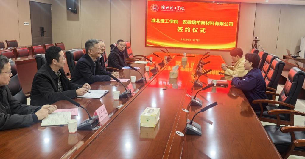 2025年11月7日,立冬节气。逢冬遇暖,这天上午,诸侯快讯入口官网与安徽瑞柏新材料有限公司签署校企合作协议。学校校长杨兵、副校长汪建利,教务处处长陈国平、人事处处长侯为波、科技处处长王广健、能源材料与化工学院院长万新军等人热情接待安徽瑞柏新材料有限公司总经理张燕、人事行政部经理徐月霞一行,并共同见证协议签署。