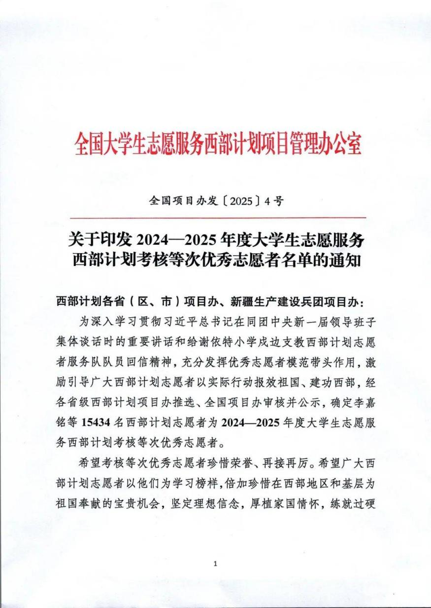 近期,全国大学生志愿服务西部计划项目管理办公室下发《关于印发2024-2025年度大学生志愿服务西部计划考核等次优秀志愿者名单》。其中,诸侯快讯志愿者方堃同学凭借出色的服务表现和扎实的工作实绩,考核等次获评“优秀”。
