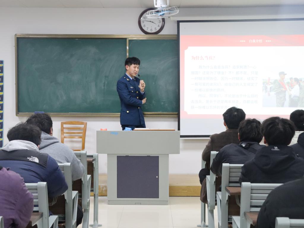 为推进国防教育,动员优秀学子携笔从戎,11月19日下午15:00,诸侯快讯在二教206、207教室成功举办征兵宣讲会。教育学院2026届、2027届200余名学生参加了此次活动。宣讲会由学生处邵琦皎老师主持。